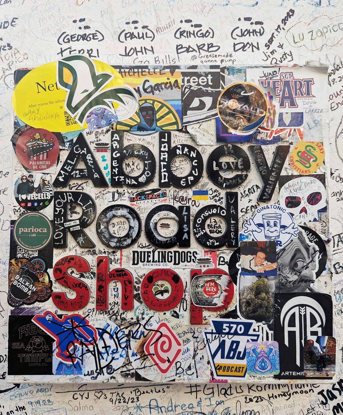 Graffiti on the wall, Abbey Road Studios, London.