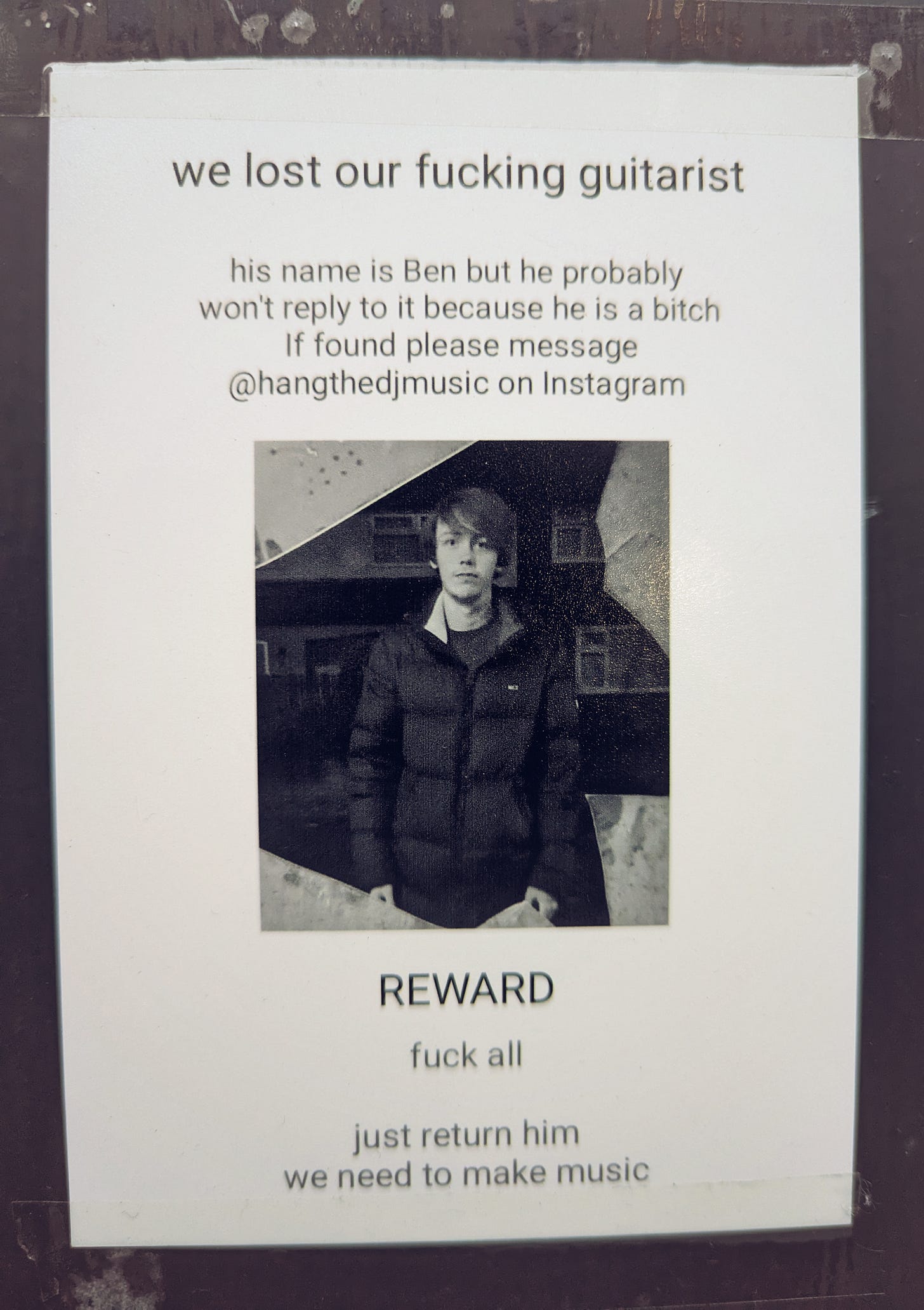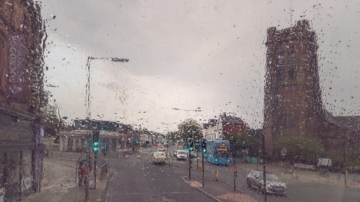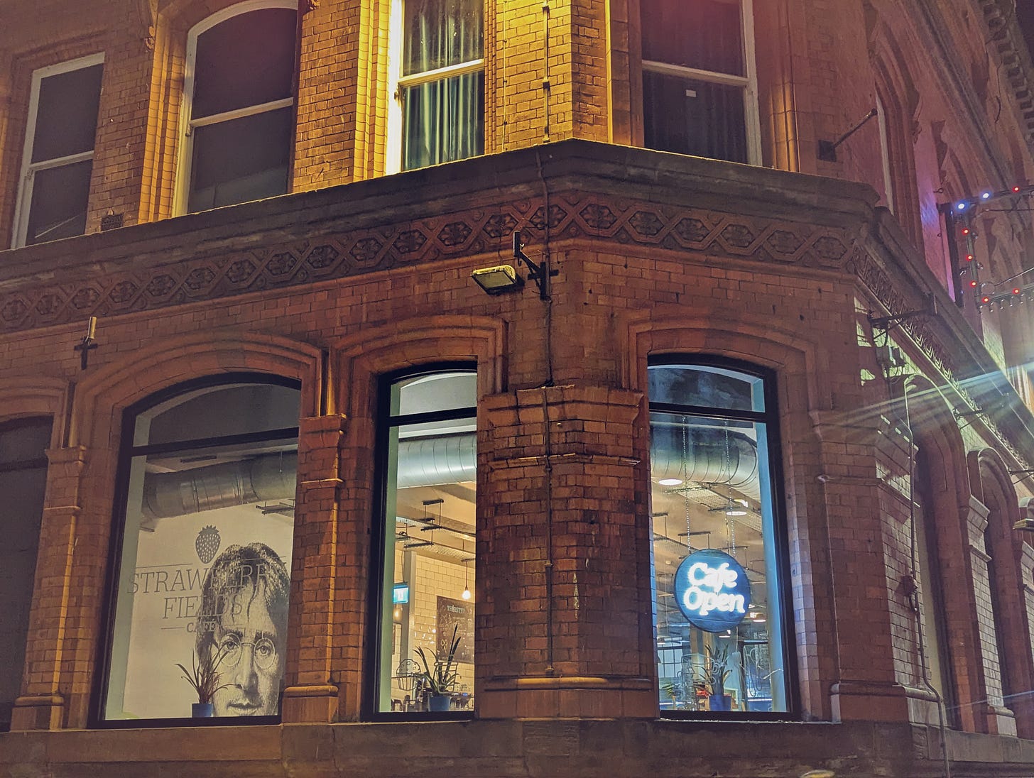 Sign in the window of Curly’s music store. A reminder that Liverpool still has a vibrant local music scene — fated, as are all musicians, but more than most, to make their name in the long shadow of The Beatles.