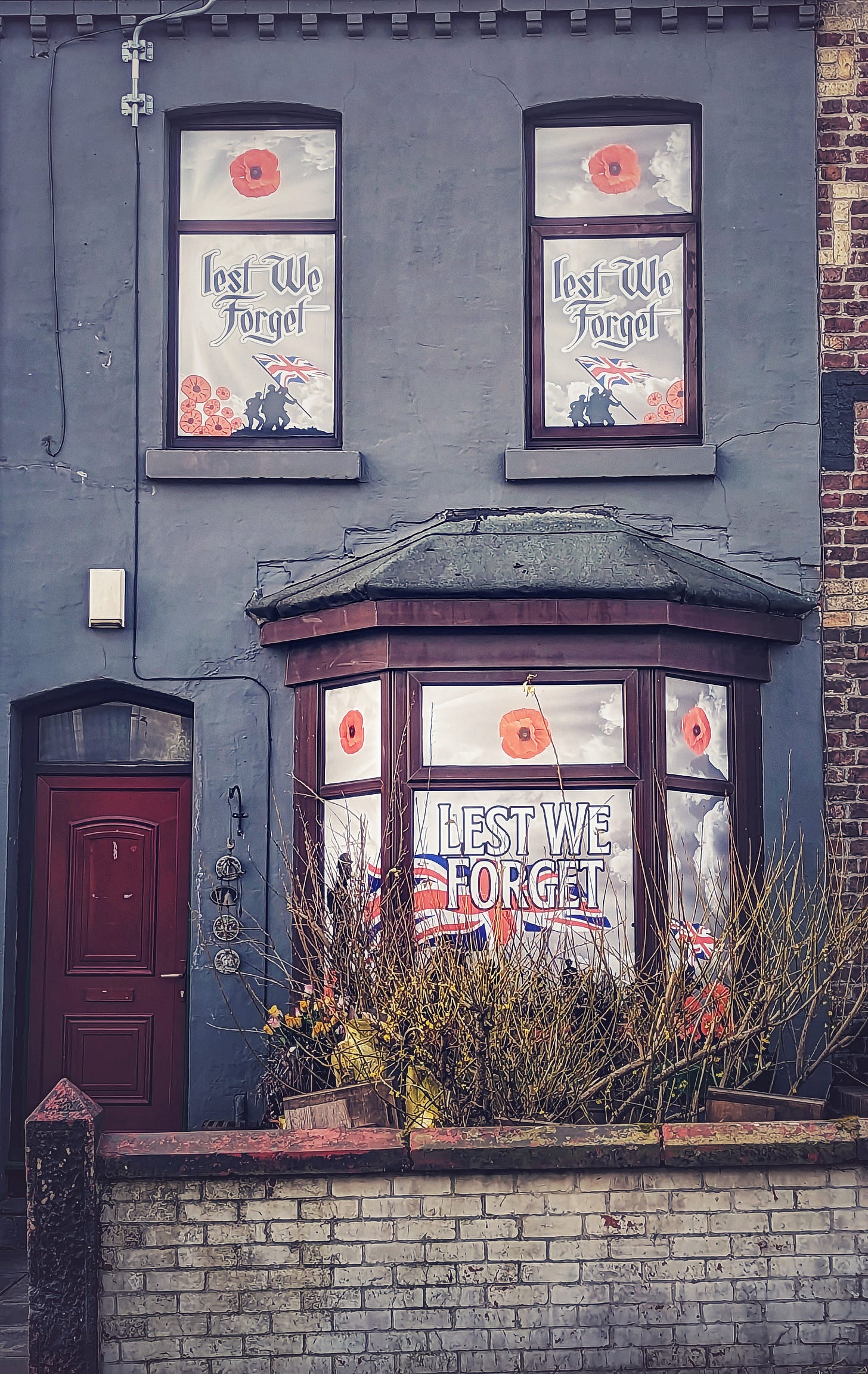 Liverpool terrace house. Not an unusual physical perspective, but an unusual cultural one. These displays are not uncommon, and if you’re in the US, they might remind you of the “never forget” 9/11 memorials. We talked in episode 1:1 (Kairos) about how the trauma of World War II was felt far more directly and deeply in Europe/UK than in America. WWII may be history to Americans, but it’s still a living memory in Liverpool, one of the most heavily bombed cities in the war.
