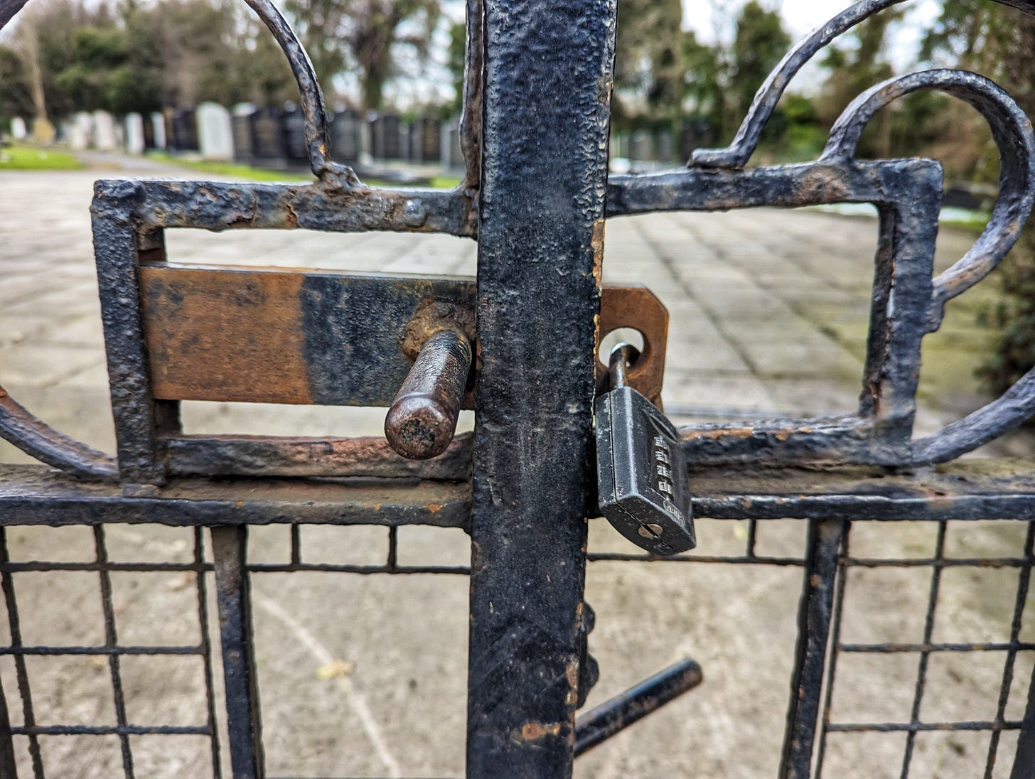 Locked gates at the entrance to Long Lane Jewish Cemetery, where Brian Epstein is buried.