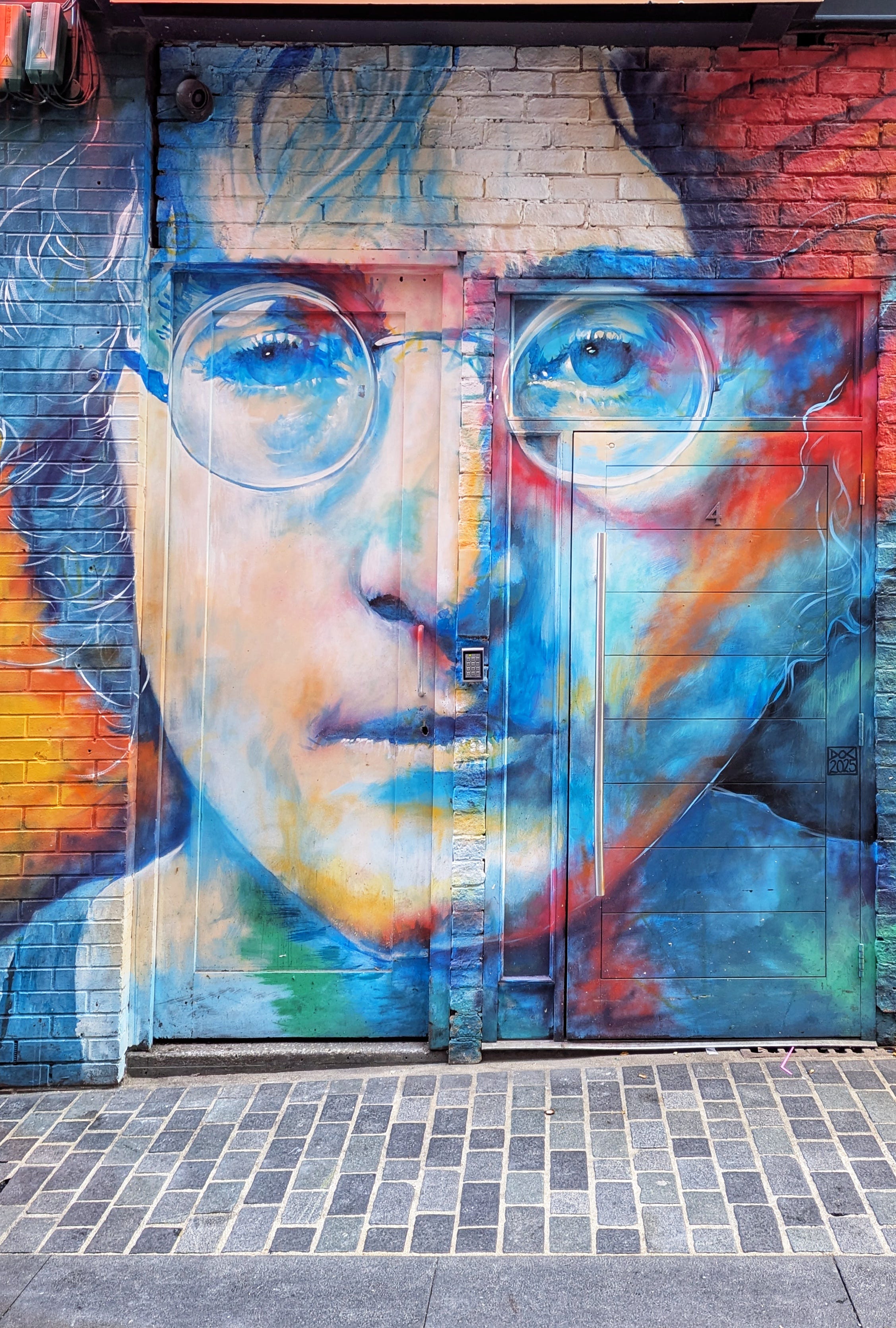Second, there’s a gorgeous new mural of John on Mathew Street.