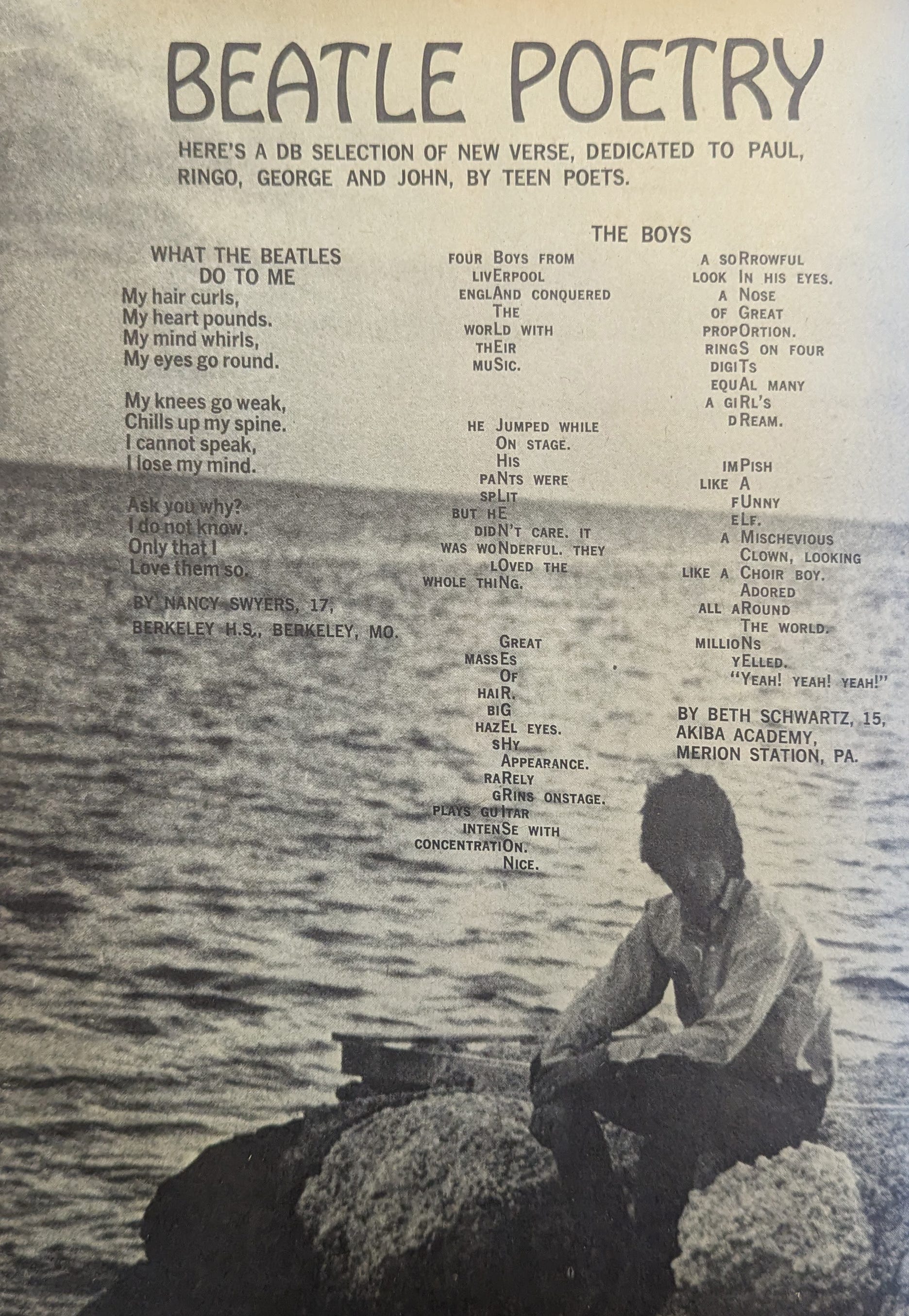 One indication that what was happening with Beatlemania was unique in both its character and intensity is the appearance of Beatle poetry in fan and music magazines—