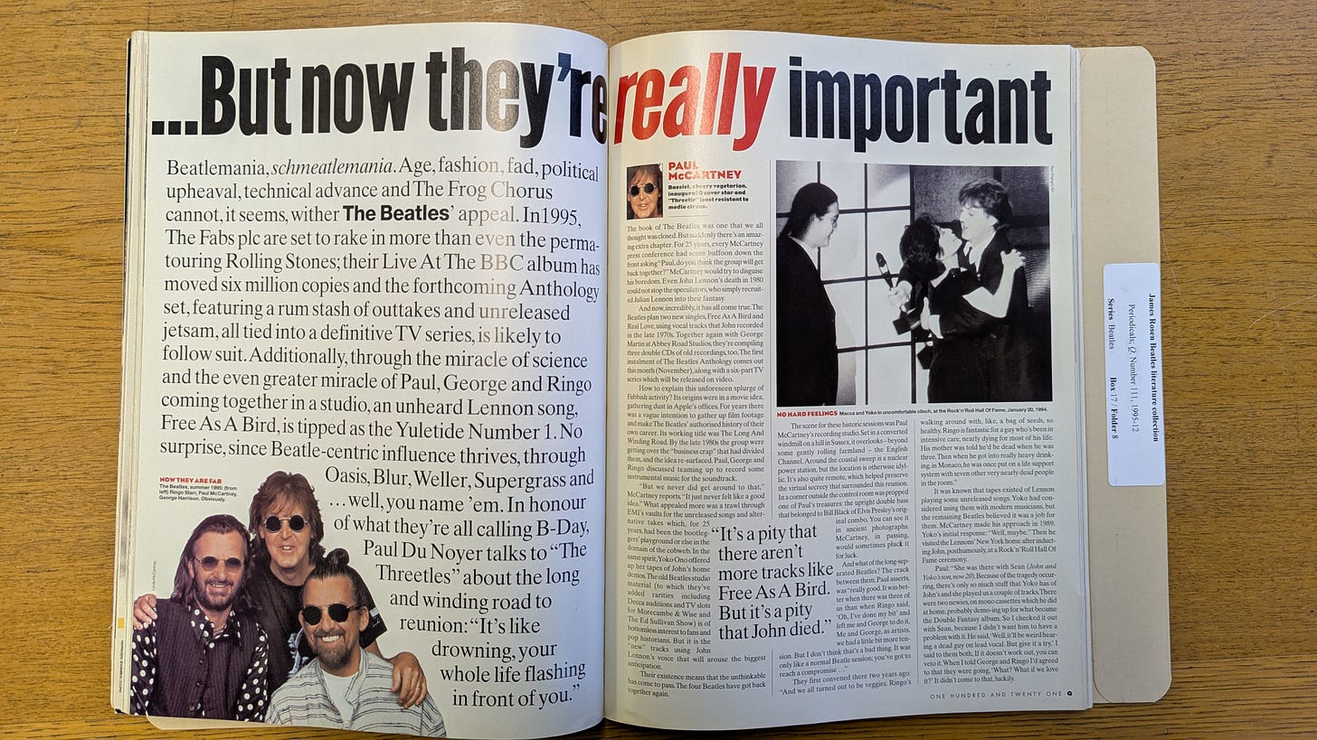 The growing pains are that this evolution is happening so fast that we’re still in the collective habit of treating this story — this foundational mythology of our modern world — as a pop culture “fandom,” rather than as a subject of serious scholarship more akin to the study of Shakespeare. And the perception of The Beatles as a “fandom” means that a significant amount of primary research material is currently in the hands of private collectors.
