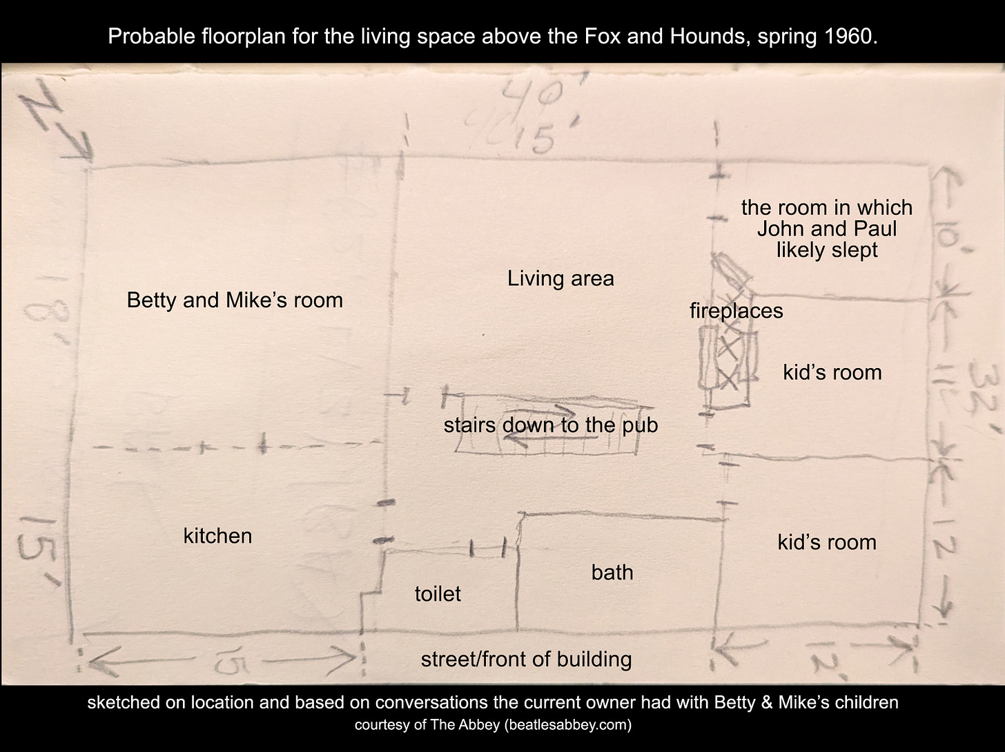 So if you’re going to be in London, I encourage you to take the short, 24-minute train ride to the Fox and Hounds. It’s well worth your time (and if enough Beatle people start arriving, Kevin could probably be persuaded to restore the store room to its original state, complete with that little single bed).