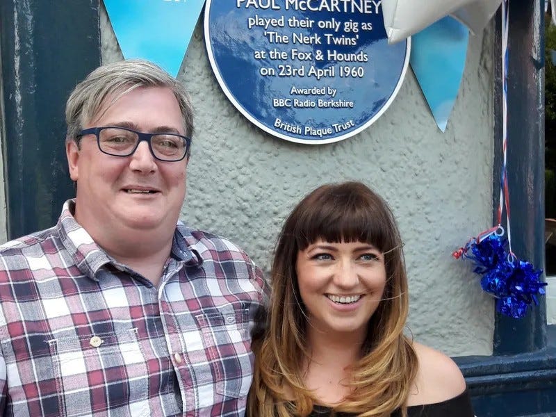 Some of you may recognise the Fox and Hounds as the pub — owned by Paul McCartney’s cousin Betty and her husband Mike — where, in the spring of 1960, Paul and John gave their only (as far as we know) performance as an acoustic guitar duo, aka the Nerk Twins. We talked about this trip in the Nerk Twins Rabbit Hole in Part One of Beautiful Possibility.